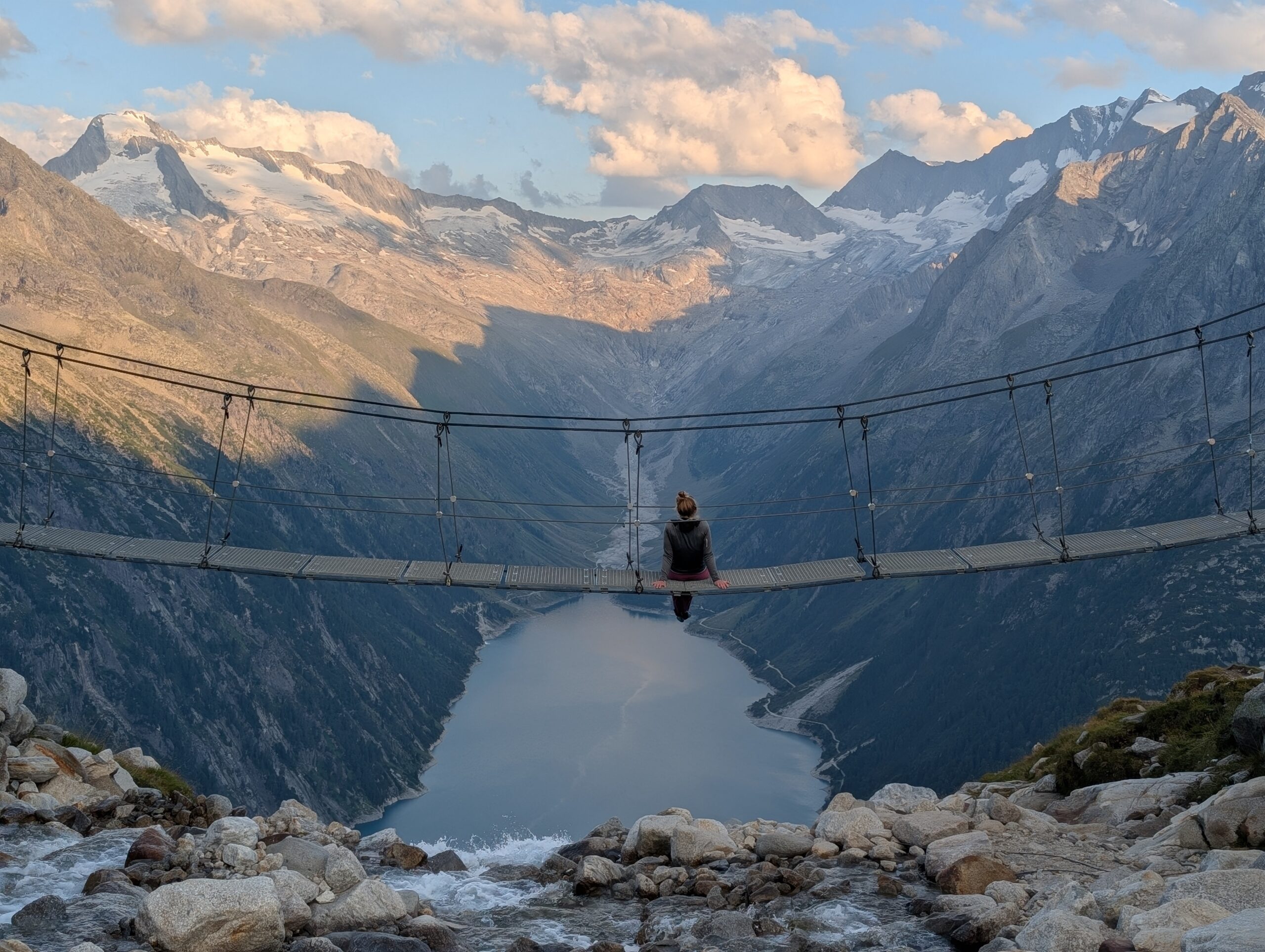Nicht vergessen den Insta Spot an der Hängebrücke mitzunehmen! Idealer Zeitpunkt für wenig betrieb ist nach dem Abendessen auf der Olpererhütte.
