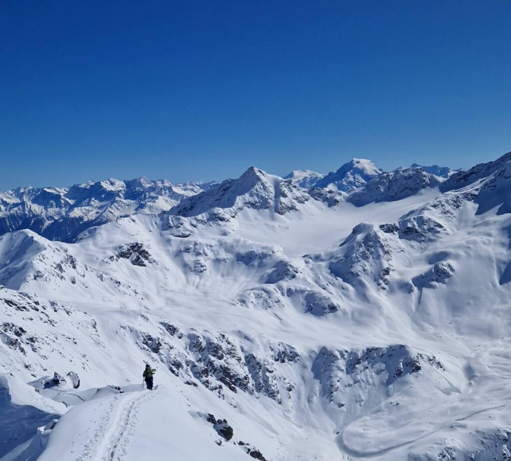 Diese Rundtour verbindet eine eindrucksvolle Gratüberschreitung mit weitläufigen, oft unverspurten Hängen unterhalb des Piz Cristanas. Der Abschnitt am Grat ist landschaftlich grandios, verlangt aber gute Sicht, stabile Lawinenverhältnisse und besondere Vorsicht vor großen Wechten. Die Abfahrt führt über abwechslungsreiche, gleichmäßig geneigte Hänge, bevor ein letzter kurzer Gegenanstieg zur Sesvennahütte wartet.